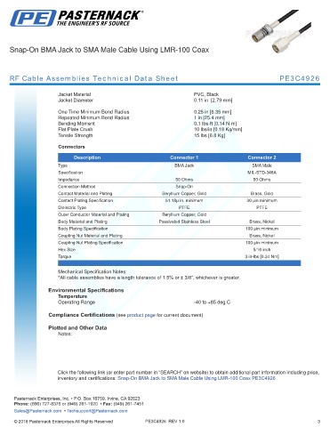RF Cable Assemblies Technical Data Sheet PE3C4926