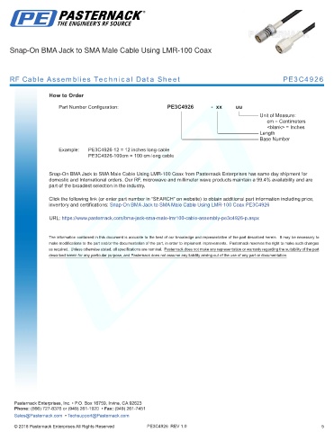 any representation or warranty regarding the suitability of the part described herein for any particular purpose, and Pasternack does not assume any liability arising out of the use of any part or documentation.