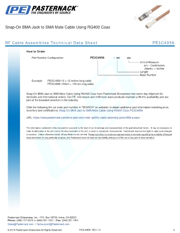 any representation or warranty regarding the suitability of the part described herein for any particular purpose, and Pasternack does not assume any liability arising out of the use of any part or documentation.