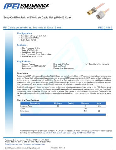 RF Cable Assemblies Technical Data Sheet PE3C4883
