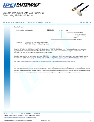 RF Cable Assemblies Technical Data Sheet PE3C4911