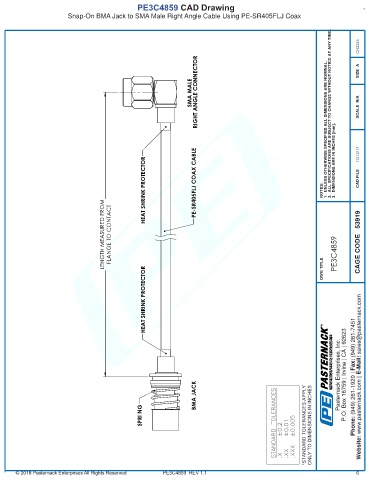 *STANDARD TOLERANCES APPLY ONLY TO DIMENSIONS IN INCHES Website: www.pasternack.com | E-Mail:
