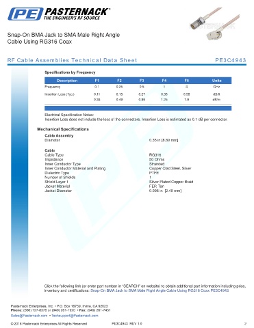 RF Cable Assemblies Technical Data Sheet PE3C4943