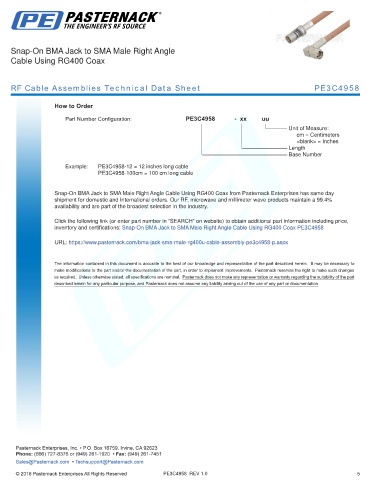 any representation or warranty regarding the suitability of the part described herein for any particular purpose, and Pasternack does not assume any liability arising out of the use of any part or documentation.