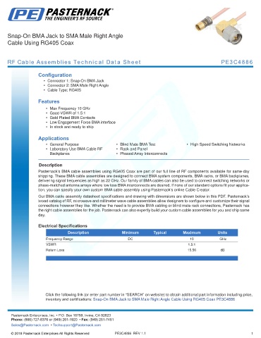RF Cable Assemblies Technical Data Sheet PE3C4886