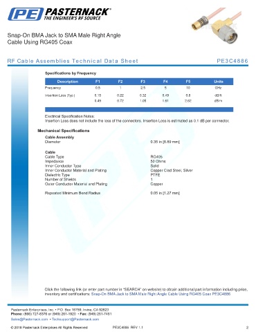 RF Cable Assemblies Technical Data Sheet PE3C4886