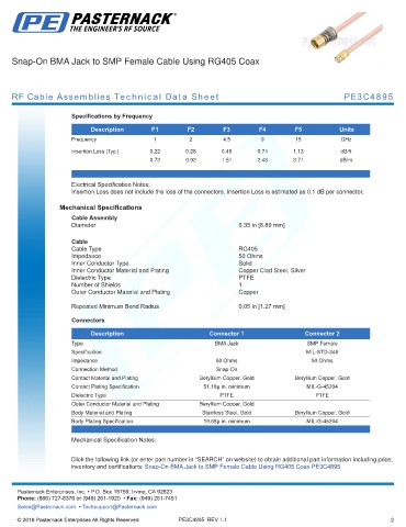 RF Cable Assemblies Technical Data Sheet PE3C4895