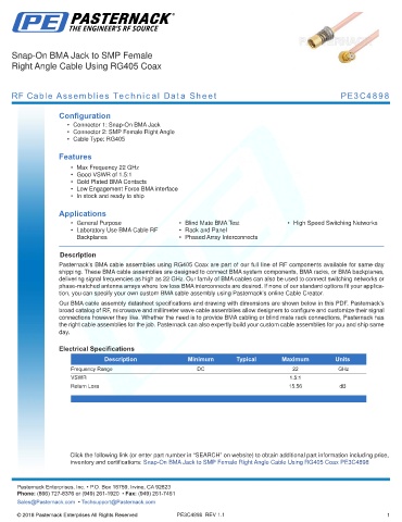 RF Cable Assemblies Technical Data Sheet PE3C4898