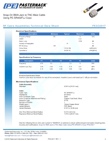 RF Cable Assemblies Technical Data Sheet PE3C4917