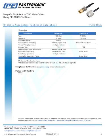 RF Cable Assemblies Technical Data Sheet PE3C4865