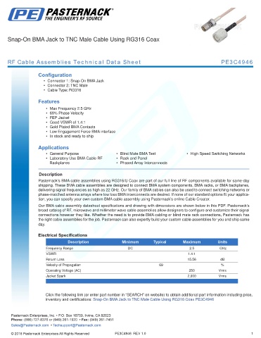 RF Cable Assemblies Technical Data Sheet PE3C4946