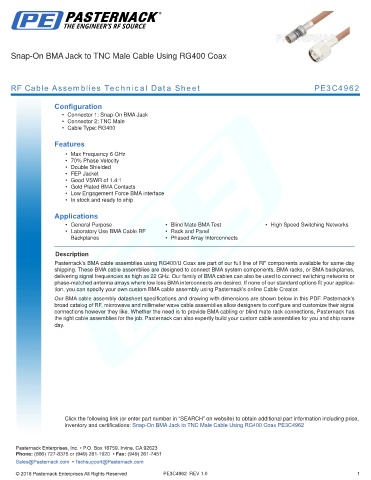 RF Cable Assemblies Technical Data Sheet PE3C4962
