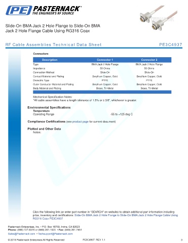 RF Cable Assemblies Technical Data Sheet PE3C4937