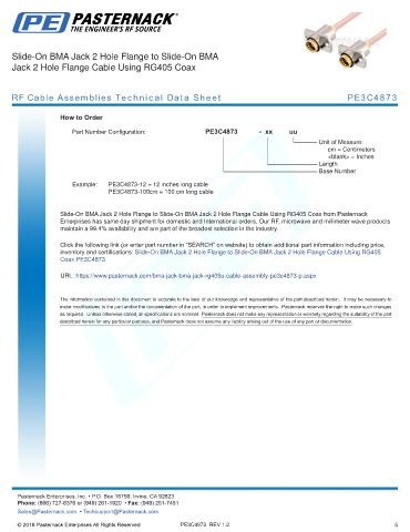 any representation or warranty regarding the suitability of the part described herein for any particular purpose, and Pasternack does not assume any liability arising out of the use of any part or documentation.