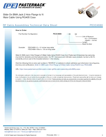 RF Cable Assemblies Technical Data Sheet PE3C4888