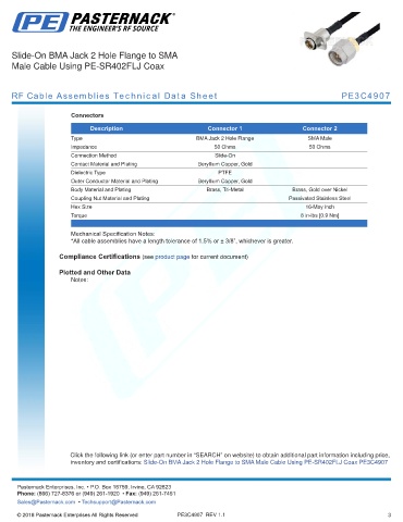 RF Cable Assemblies Technical Data Sheet PE3C4907