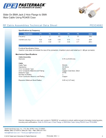 RF Cable Assemblies Technical Data Sheet PE3C4882