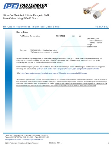 RF Cable Assemblies Technical Data Sheet PE3C4882