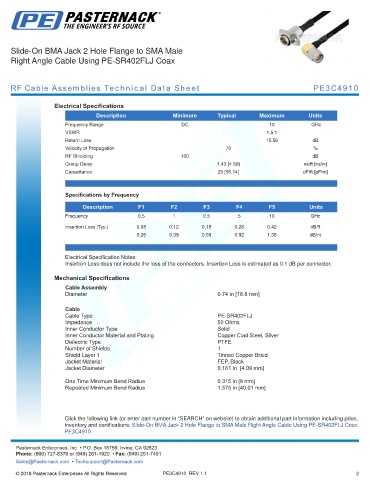 RF Cable Assemblies Technical Data Sheet PE3C4910
