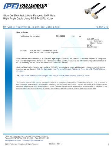 RF Cable Assemblies Technical Data Sheet PE3C4910