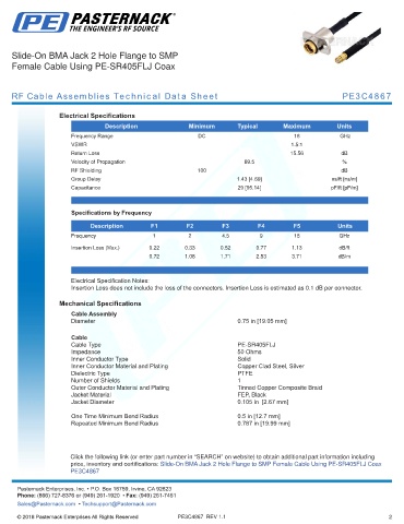 RF Cable Assemblies Technical Data Sheet PE3C4867