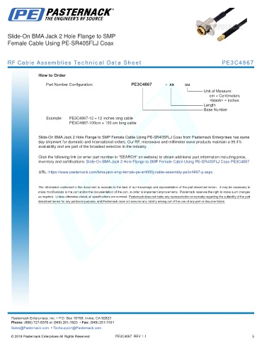 RF Cable Assemblies Technical Data Sheet PE3C4867