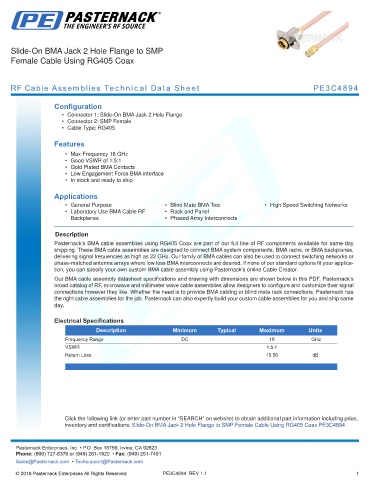 RF Cable Assemblies Technical Data Sheet PE3C4894