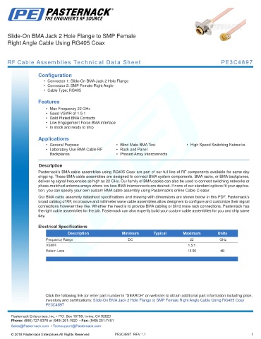 RF Cable Assemblies Technical Data Sheet PE3C4897