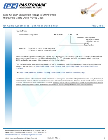 any representation or warranty regarding the suitability of the part described herein for any particular purpose, and Pasternack does not assume any liability arising out of the use of any part or documentation.