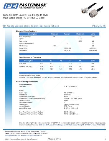 RF Cable Assemblies Technical Data Sheet PE3C4916