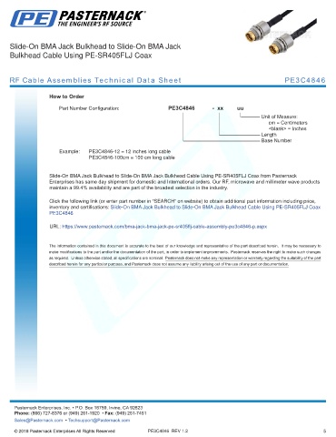 any representation or warranty regarding the suitability of the part described herein for any particular purpose, and Pasternack does not assume any liability arising out of the use of any part or documentation.