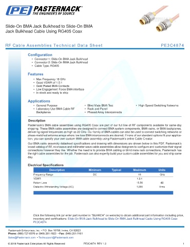 RF Cable Assemblies Technical Data Sheet PE3C4874