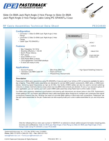 RF Cable Assemblies Technical Data Sheet PE3C4849