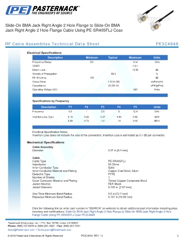 RF Cable Assemblies Technical Data Sheet PE3C4849