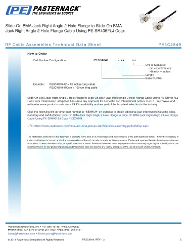RF Cable Assemblies Technical Data Sheet PE3C4849