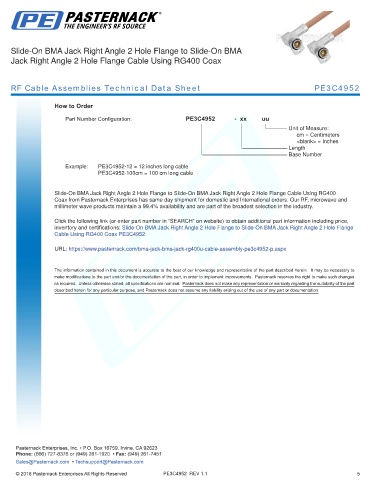 RF Cable Assemblies Technical Data Sheet PE3C4952