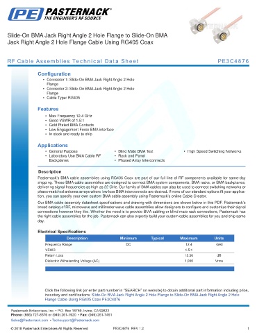 RF Cable Assemblies Technical Data Sheet PE3C4876