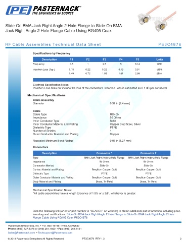 RF Cable Assemblies Technical Data Sheet PE3C4876