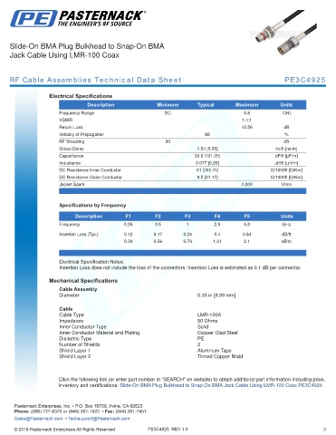 RF Cable Assemblies Technical Data Sheet PE3C4925