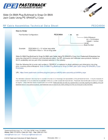 any representation or warranty regarding the suitability of the part described herein for any particular purpose, and Pasternack does not assume any liability arising out of the use of any part or documentation.