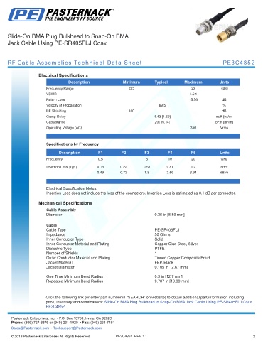 RF Cable Assemblies Technical Data Sheet PE3C4852