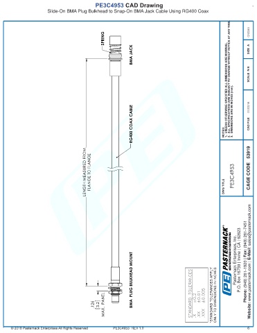 any representation or warranty regarding the suitability of the part described herein for any particular purpose, and Pasternack does not assume any liability arising out of the use of any part or documentation. -