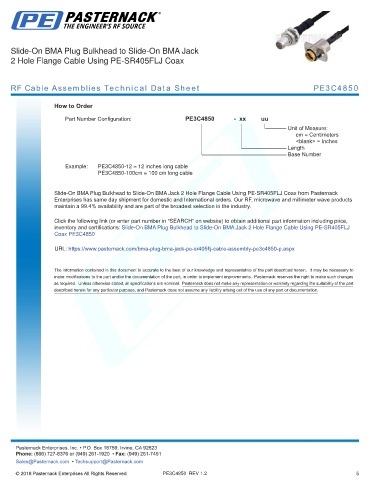 RF Cable Assemblies Technical Data Sheet PE3C4850