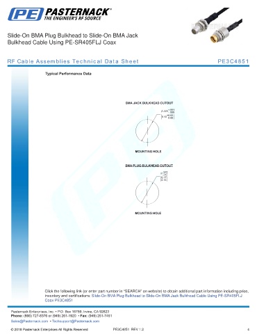 Coax PE3C4851 PANEL CUTOUT Pasternack does not make -