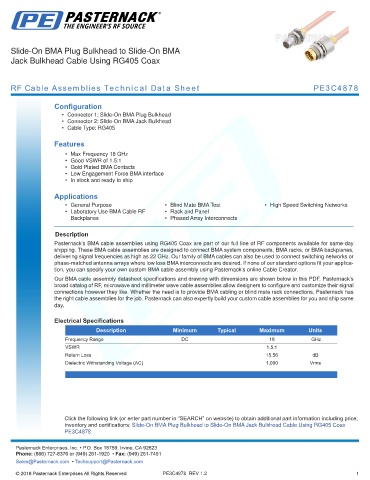 RF Cable Assemblies Technical Data Sheet PE3C4878