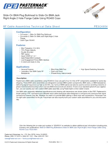 RF Cable Assemblies Technical Data Sheet PE3C4954