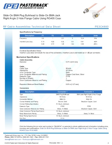 RF Cable Assemblies Technical Data Sheet PE3C4880