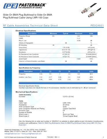 RF Cable Assemblies Technical Data Sheet PE3C4921