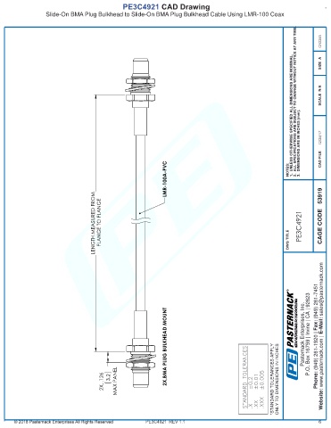 *STANDARD TOLERANCES APPLY ONLY TO DIMENSIONS IN INCHES - Website: www.pasternack.com |
