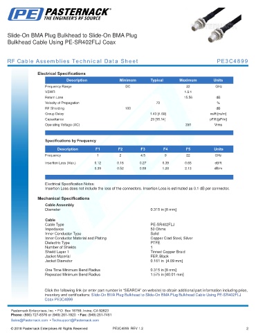 RF Cable Assemblies Technical Data Sheet PE3C4899